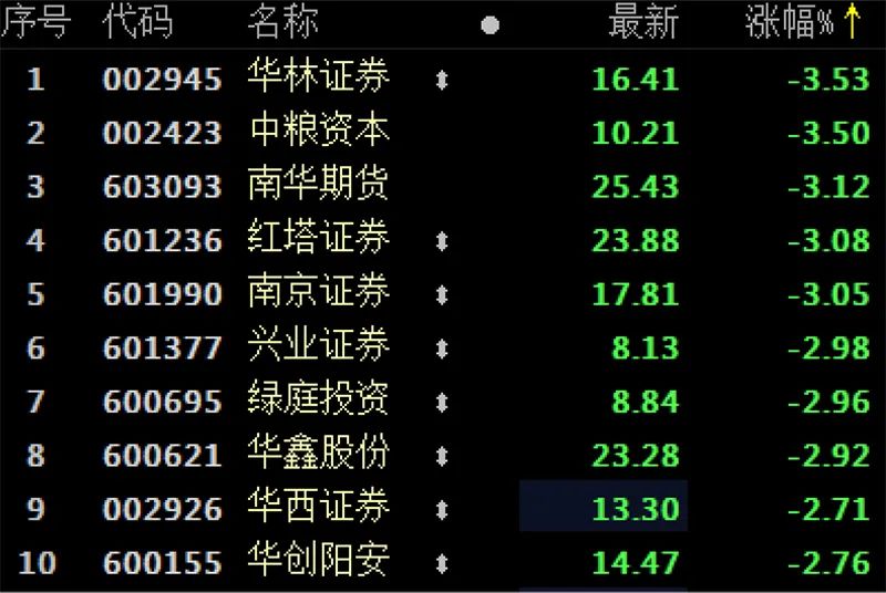 银行板块中,青农商行(7.290,-0.15,-2.02%)股价继续涨停,而常熟银行(8.300,-0.12,-1.43%)、西安银行(6.180,-0.07,-1.12%)等跌幅超过2%;非银金融板块中,光大证券(29.660,-0.37,-1.23%)、中泰证券(19.760,-0.55,-2.71%)、浙商证券(21.150,1.83,9.47%)股价继续涨停,而华林证券(17.560,0.96,5.78%)、南京证券(17.950,0.63,3.64%)等跌幅超过3%。